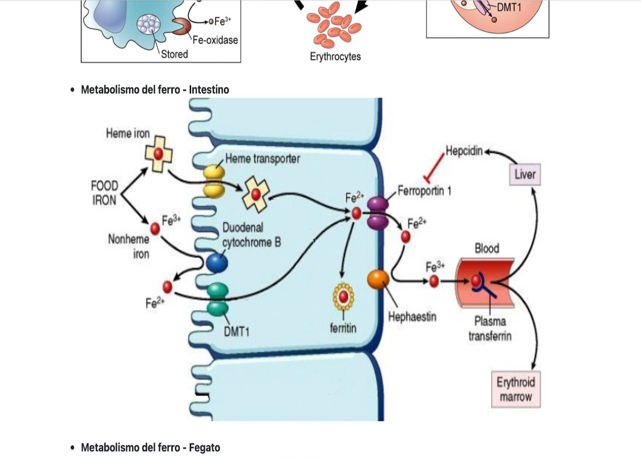 In sintesi: flogosi-> aumento citochine (IL6) -> sintesi epcidina -> chiusura canale ferroporrtina-> ferro non assorbito nel sangue.