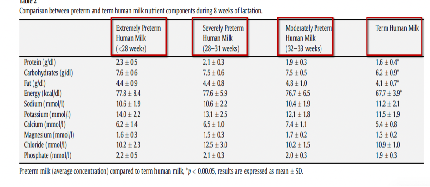 Il latte materno non riesce a soddisfare relativamente ai very low birth weight (VLBW) e ai extremely low (ELBW) le necessità di vitamina A e D (vitamine liposolubili).