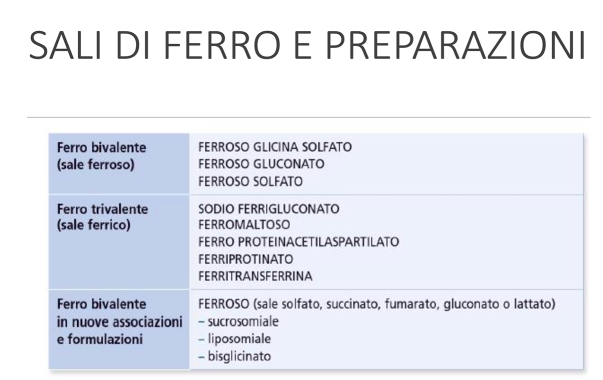I Sali ferrosi e ferrici sono preparati medicinali, mentre le nuove formulazioni sono prevalentemente integratori.