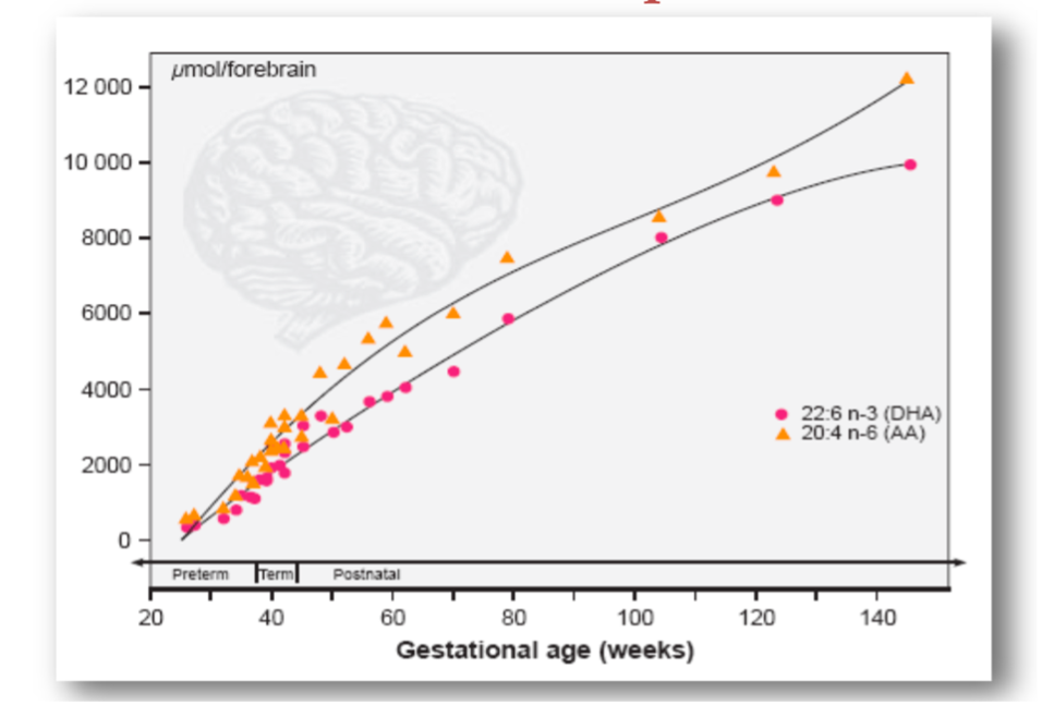 Che il DHA abbia un ruolo chiave nell’organismo si vede anche nel soggetto pretermine. In questo è essenziale che esplichi sia la sua azione strutturale, rientrando nella costituzione delle membrane cellulari, sia la funzione metabolica, avendo ruolo nell’immunità, infiammazione ed aggregazione piastrinica (vedi approfondimento precedente). Giustappunto nel soggetto prematuro, in virtù dell’immaturità degli organi ed apparati che lo affliggono, è importante incrementare DHA affinchè sia garantita crescita cellulare con particolare attenzione al sistema nervoso centrale con sviluppo psicomotorio ed adeguate performance visive. La concentrazione plasmatica materna risulta essere più elevata in DHA nel terzo trimestre di gravidanza, laddove spesso il parto pretermine è già avvenuto, proprio per sopperire è intelligente integrare l’acido grasso. Quindi i prematuri sono una delle categorie a rischio di deficit di LCPUFA (ACIDI GRASSI A CATENA LUNGA POLIINSATURI) , insieme ci sono i figli di mamma fumatrice, coloro che adottano il divezzamento vegano ed i bambini affetti da errori congeniti del metabolismo come nel caso di iperfenilalaninemia. In particolare: una review di Smith e Rouse in “maternal health, neonatology and perinatology” (2017) [3:22] intitolata “ docosahexaenoic acid and the preterm infant” spiega come il DHA sia un acido grasso poli insaturo a catena lunga che gioca un ruolo nello sviluppo cognitivo e visivo, come anche funzione immunitaria, nei neonati. Tra questi quelli prematuri sono tipicamente deficitari in DHA per diversi ordini di ragione, incluso il fatto che il DHA incrementa nel terzo trimestre. Quindi è bene che questi neonati integrino tale sostanza, essendo in un certo senso dipendenti dall’assunzione enterale. Più comunemente assumono DHA tramite latte materno, tuttavia il DHA contenuto nel latte è variabile, in correlazione con intake materno , e quasi sempre risulta essere insufficiente. In questa ottica sono state sperimentate sia integrazioni di DHA su madre che allatta sia direttamente su prematuro. Dallo studio si evincono “short term benefits”. Sicuramente la direzione intrapresa è quella nei prossimi anni di approfondire per ottimizzare i risultati .