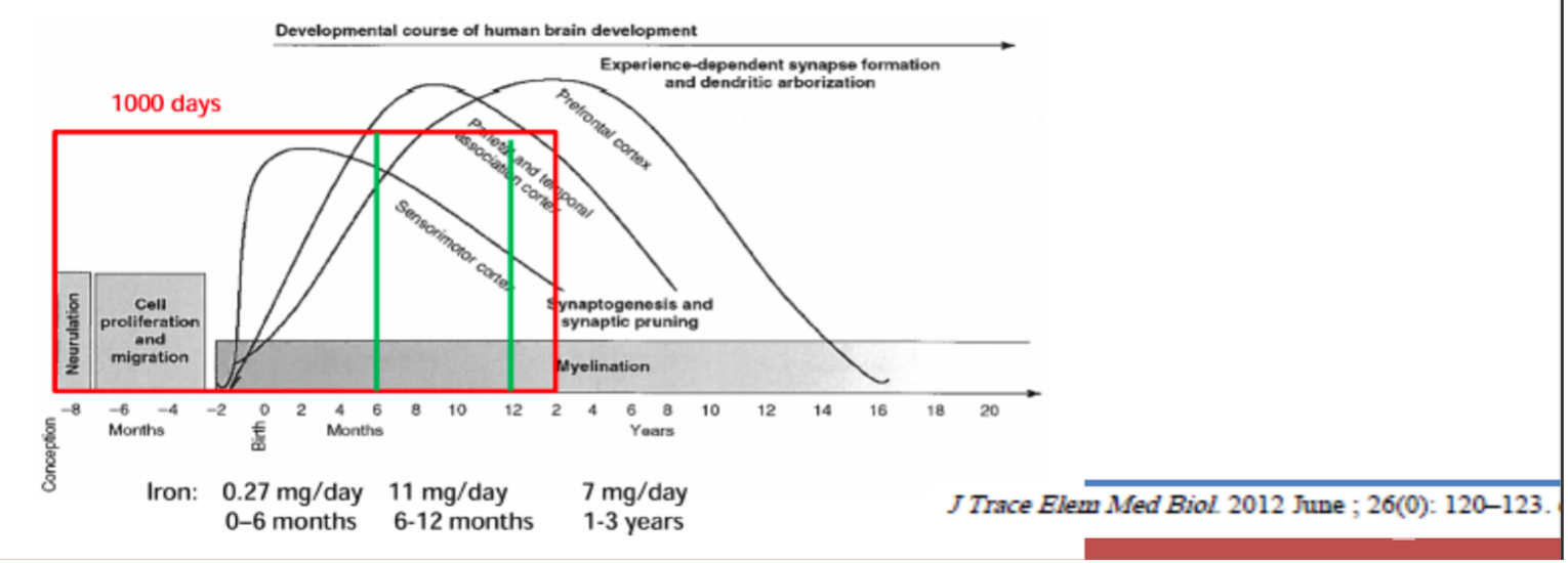 Quindi, bambini esposti nel periodo perinatale a carenza di ferro presentano alterato sviluppo cognitivo e neuromotorio. Vista l’entità delle ripercussioni che derivano da un tale deficit è importante un programming nutrizionale.